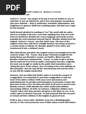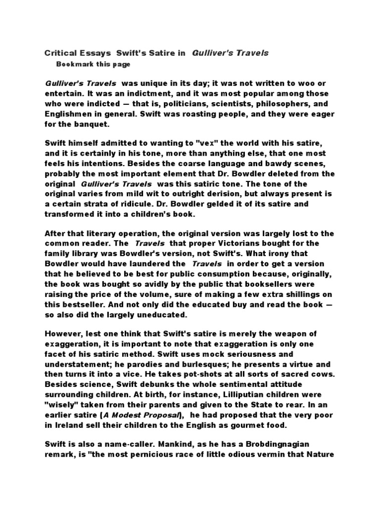 Critical Essays Swift S Satire In Pdf Gulliver S Travels Irony